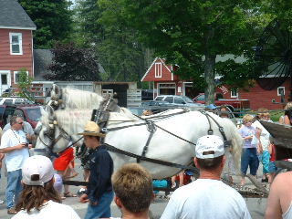 | The car on the left is Cliff Barker's 1923 model-T Ford. He's had it in this parade every year since 1978. That's him driving. I believe this picture is from the 2003 parade. It is the first car he ever owned, having purchased it when he was still in high school back in 1944 for $100. I'm told that his parents were not pleased when he cashed in some war bonds to buy this car! |